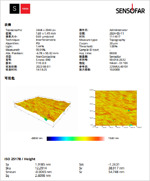 表面质量:超镜面 Sa<2nm